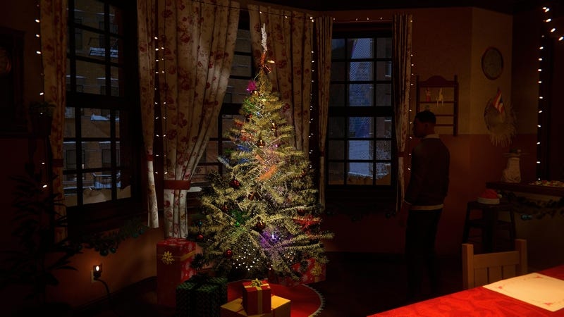 Once home, in an atmosphere as somber as the story’s drama (sadly, the tangerines were sold out), Miles approaches the Christmas tree. Could there be a Switch 2 among the presents? Sorry, Miles, but Nintendo’s new console won’t be out until next year. I hope you’re into new socks.