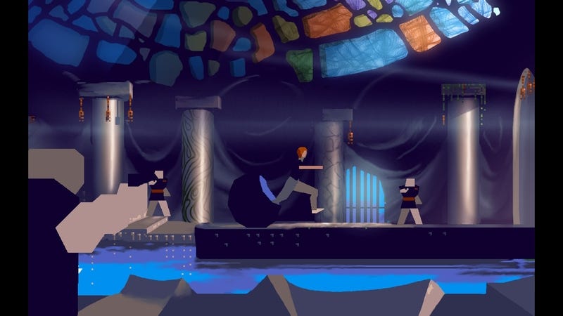This is the 20th-anniversary edition of Another World. The visuals have been cleaned up and enhanced, but there’s a nostalgic twist for anyone who played the original on an Amiga 500: tap a key at any moment and you can toggle between the modern graphics and the 1991 look—how wonderful! Here’s a sample: