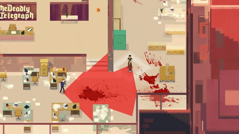In Serial Cleaner, you’re tasked with cleaning up various crime scenes. Each job comes in by phone, and they all follow a similar pattern: in these small, self-contained levels (a newspaper office, a farm, etc.), something has happened that needs to disappear.