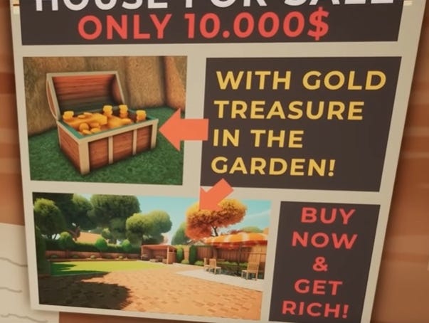 A house for sale for ten thousand dollars. And that’s not all: there’s treasure buried in the backyard. Naturally, we buy it.