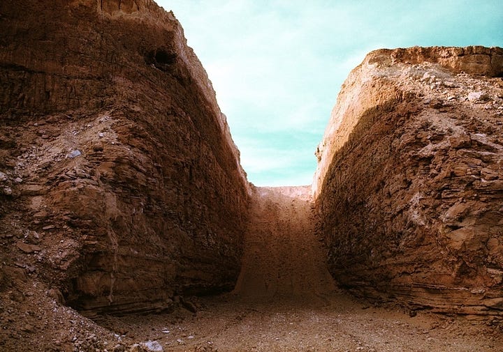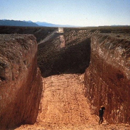 Michael Heizer (1969) Double Negative [Land Art] [Earthwork] [Excavated rock in the desert] Mormon Mesa, Nevada