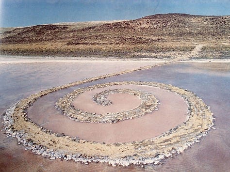 Robert Smithson (1970) Spiral Jetty [Land Art] [Earthwork] [Basalt rocks, soil, salt crystals] Great Salt Lake, Utah
