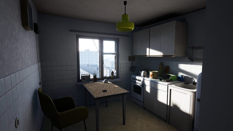 Bright Lights of Svetlov is a pure walking simulator—meaning you’ll be wandering around the apartment, performing a few simple actions, and reading some texts. That’s it. If you’re looking for an action-packed arcade shooter, this one’s not for you.