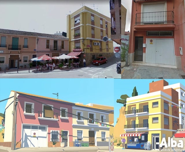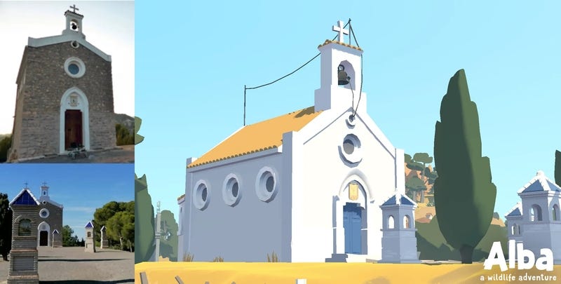 With the only limitation being sunset (and our grandparents waiting for us at home for dinner), every day we’ll discover sunset beaches, orchards with short trees heavy with oranges, the town square, cultivated fields, and all the little details reconstructed with loving precision. In a great article by Jessie van Aelst, one of the environment artists on Alba: A Wildlife Adventure, we learn how many real-world places became part of Secarral’s imaginary island.
