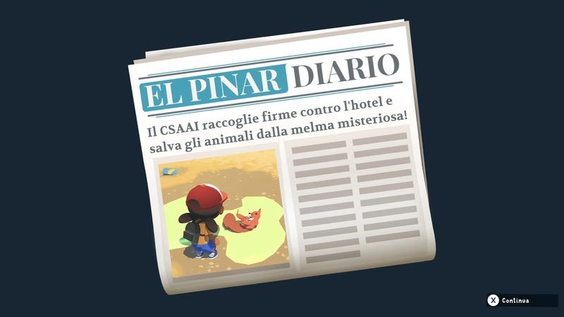 The game puts us in the shoes of a little girl named Alba: at first we see her when she’s tiny, but by the time we take control we’re already old enough to roam the island on our own, and to realize not everything is going great. On the island, everyone’s talking about a plan to build a massive tourist hotel, the kind that would draw hordes of visitors but threatens to destroy the nature reserve. Faced with that prospect, even the multi-story building (the kind of “eco-monster” we’d call it in Italy) towering over the coast starts to look like a well-integrated part of the landscape you might even feel fondness for.